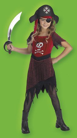The Fortune Hunter costume includes red pirate dress with skull and crossbones logo black captains hat with attached scarf and eye patch Sword and boots not included It is a perfect halloween costume Read More..