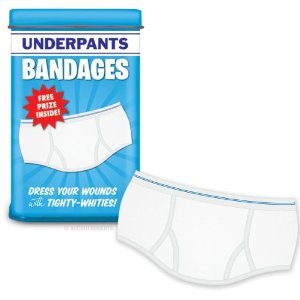 Dont leave your wound out there for everyone to see Quick cover it up with one of these Underpants Bandages Each 3-34 95 cm tall metal pocket tin contains twelve 2-12 x 1-14 63 cm x 32 cm latex-free adhesive bandages with sterile gauze and a FREE PRIZE to take your mind off of the e Read More..
